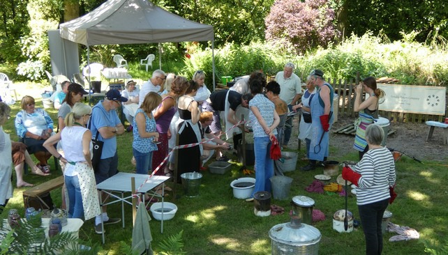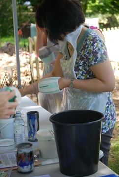Jojo kindlylet us useher gardenfor our first public raku event. Claire and her Portable Pottery Company brought along another raku kiln and therefore we were able to accept bookings from 70 people who glazed a pot for us to fire.