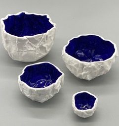 Being inspired by natural form, music, plant growth, sea flora and fauna, I love to make work starting with my own hand made paster moulds and coiled stoneware formers. Using bone china casting slip I create pieces with interplay between interior and exterior surface, glazed and unglazed, detailed and minimalist, colour and whiteness. These aspects are a continuing fascination.