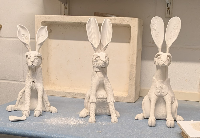 Alison gave us an insight into her making techniques and then got all of us producing one of her Hares. This was probably ttally different work from all the participants normal styles. Everone went home with a finished piece ready to bisque fire and decorate.